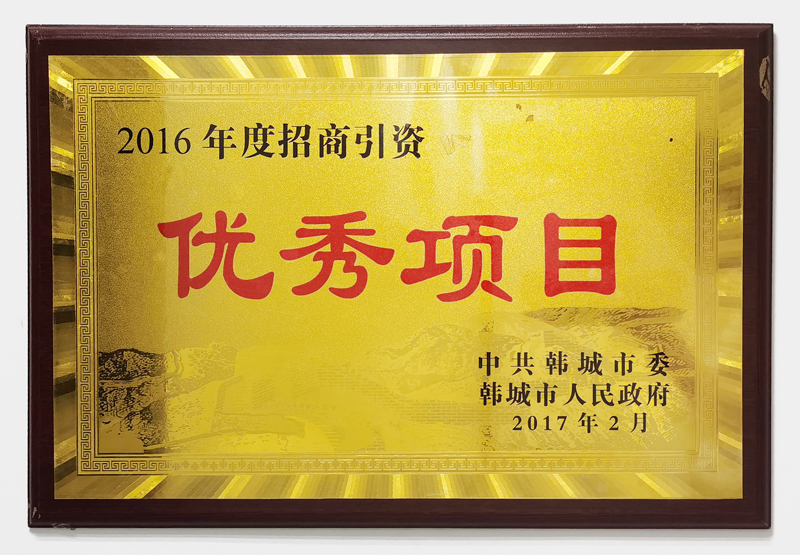 公司榮獲韓城市委、市政府頒發的“2016年度招商引資優秀項目”