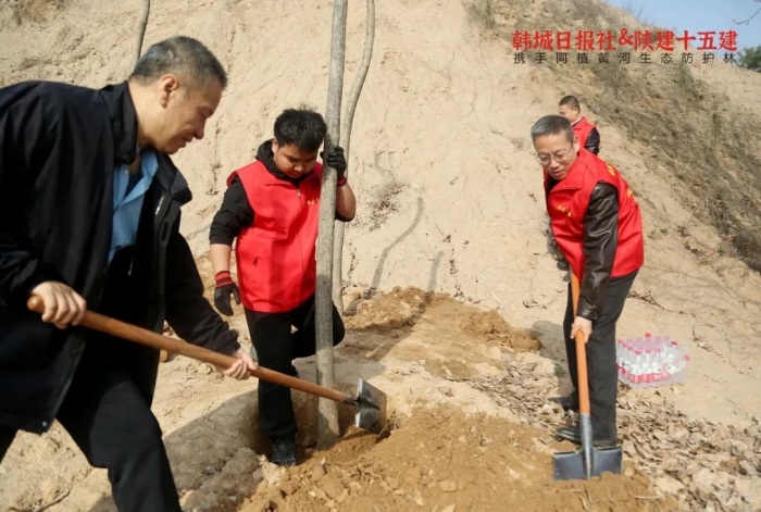 3月10日,正值一年一度的植樹節(jié)來臨之際,韓城日報社&陜建十五建“ 攜手同植黃河生態(tài)防護林”公益行動在沿黃公路黃河沿岸開展,韓城日報社社長、總編輯樊君峰、陜建十五建總會計師姬小紅一同,共同種下友誼之樹。
