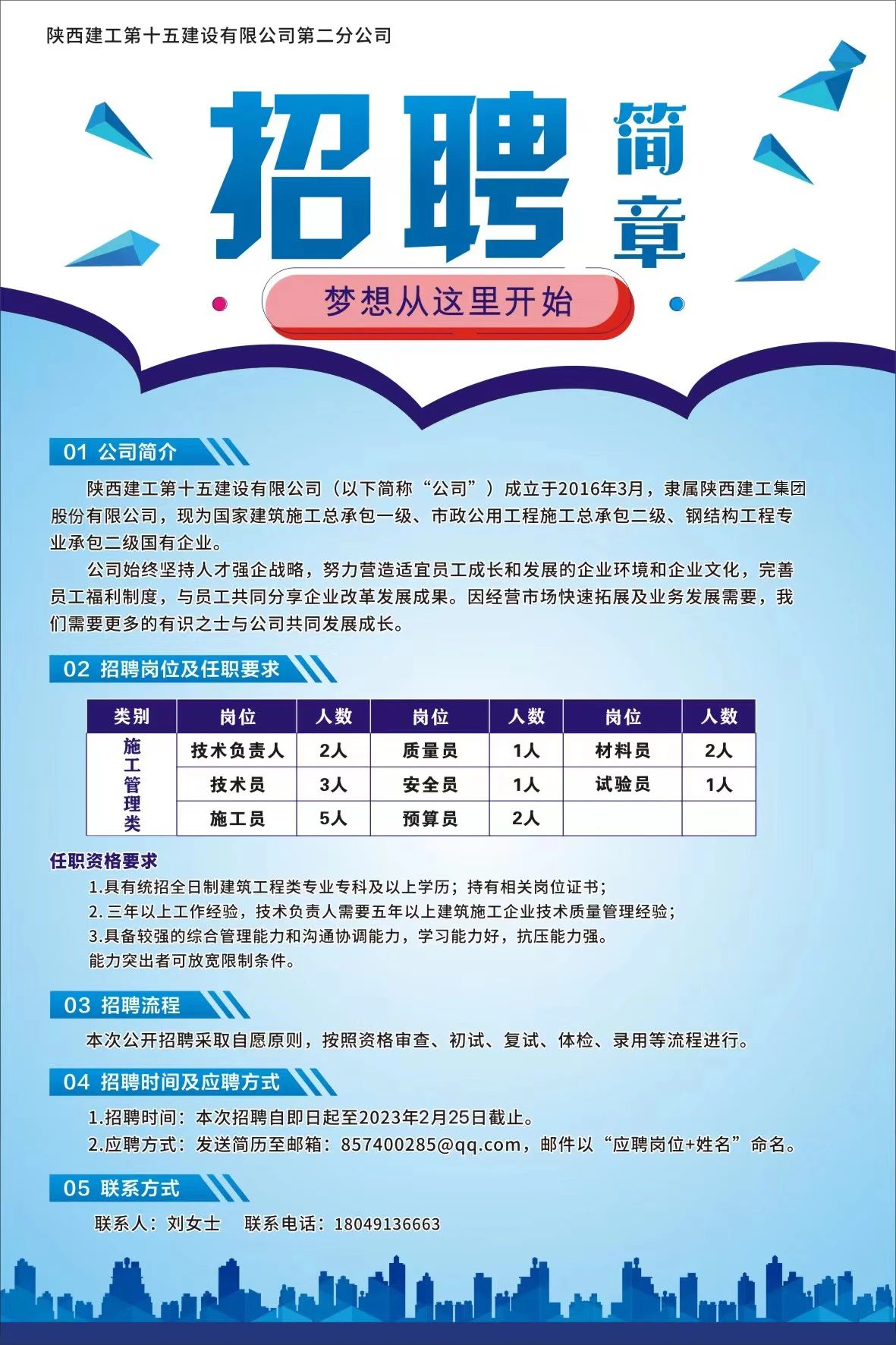 陜西建工第十五建設有限公司第二分公司招聘簡章