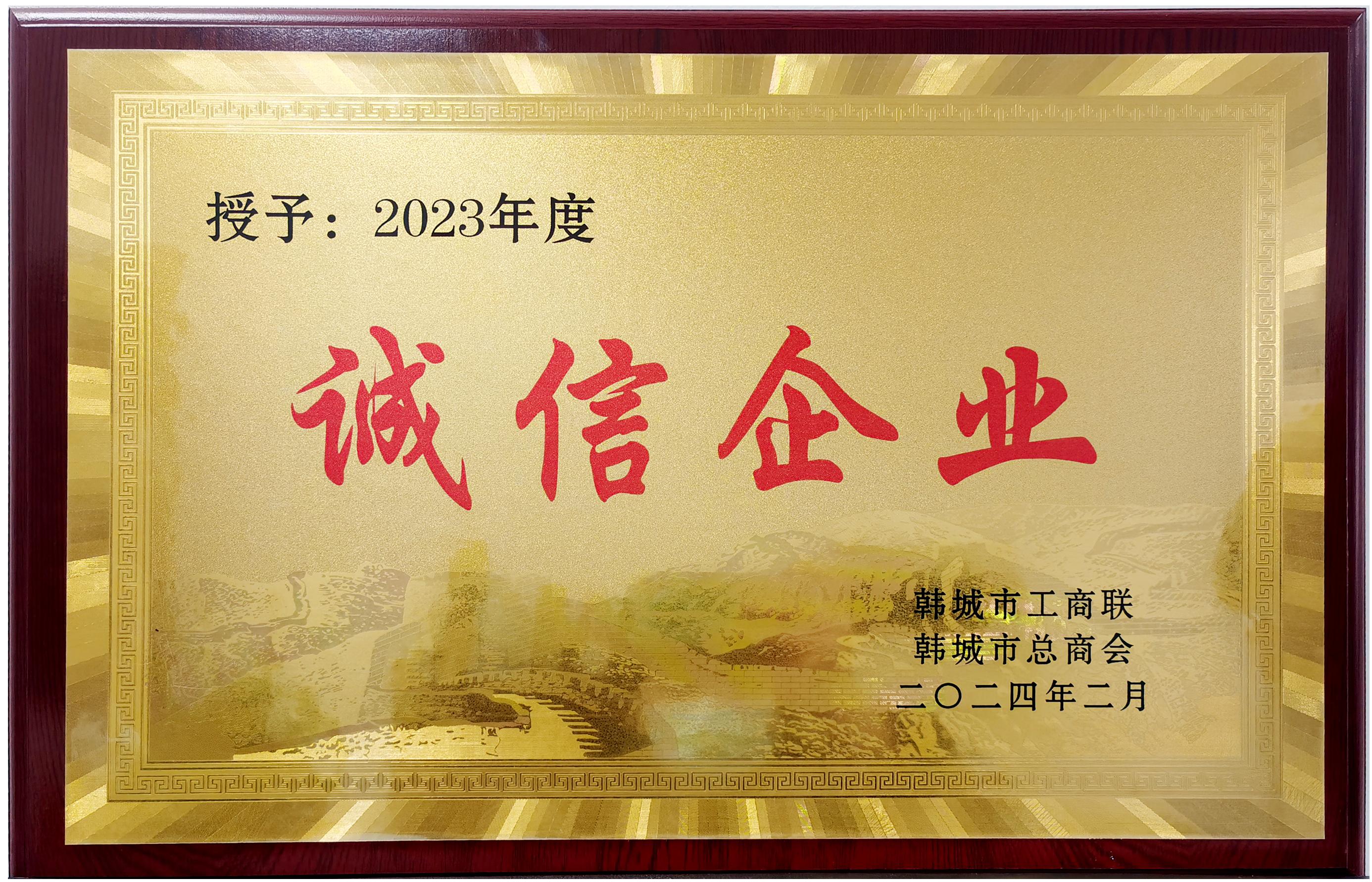 公司榮獲韓城市工商聯(lián)、韓城市總商會(huì)頒發(fā)“誠(chéng)信企業(yè)”