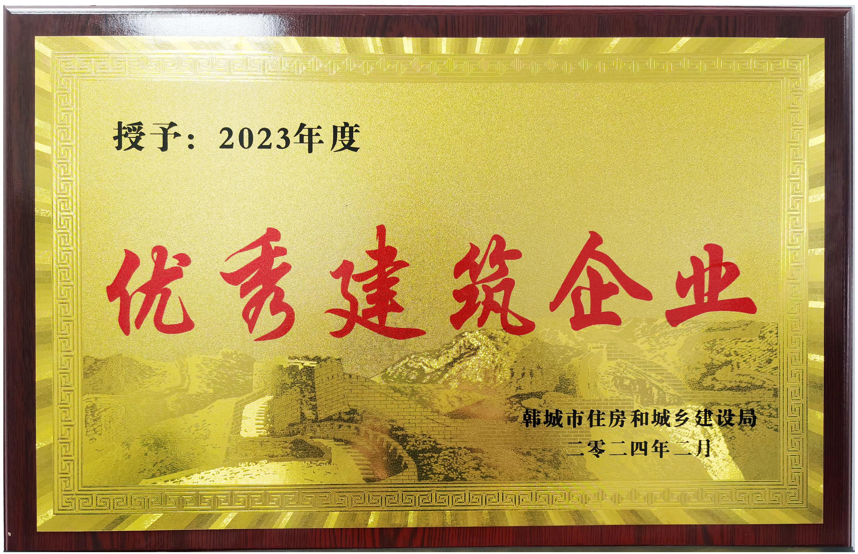 公司榮獲韓城市住房和城鄉(xiāng)建設(shè)局“優(yōu)秀建筑企業(yè)”榮譽(yù)稱(chēng)號(hào)